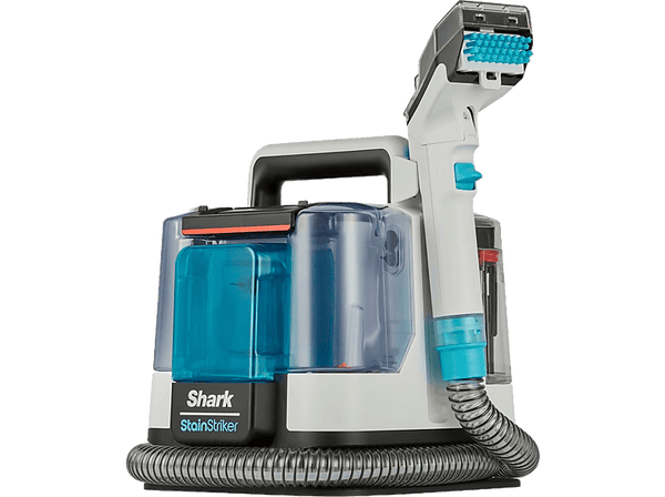 Contenido1x Máquina quitamanchas y limpiador de tapicerías Shark StainStriker, 1x Accesorio manual para manchas resistentes, 1x Accesorio manual ancho para manchas resistentes, 1x Accesorio para eliminar manchas de mascotas, 1x Boquilla estrecha, 1x Accesorio para limpiar el tubo flexible, 1x bote de fórmula 1: Shark CarpetXpert (177 ml), 1x bote de fórmula 2: Shark StainStriker Fórmula OXY Multiplier (355 ml), 1x Manual de instrucciones.